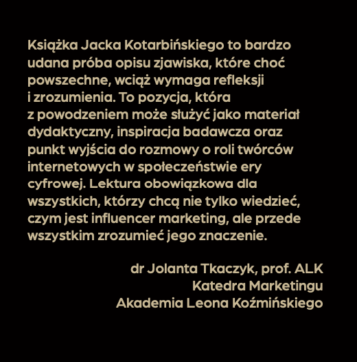 Wierzę, że nowoczesne technologie mogą i mają służyć człowiekowi. Tylko wtedy, gdy nie zapomnimy o humanistycznym fundamencie relacji. Influencer marketing nie jest tylko narzędziem sprzedaży. To nowe, cyfrowe pole dialogu, zaufania i odpowiedzialności. Dlatego dziś nie pytam już, czy influencerzy zmienili świat. Pytam, czy my, jako twórcy, odbiorcy, marketerzy – jesteśmy gotowi zmierzyć się z tym, co sami stworzyliśmy.