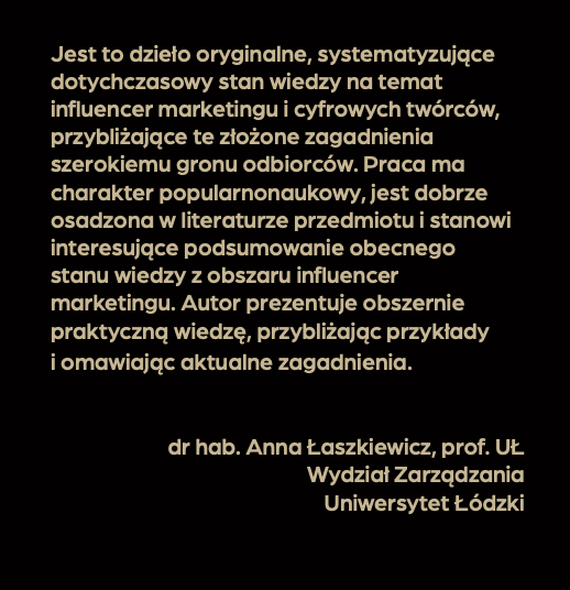 Influencer jest dziś strategiem, twórcą i liderem. Może być ambasadorem marki, współtwórcą produktu, a nawet jego współwłaścicielem. Ekonomia twórców opiera się na zacieraniu granic między konsumentem a nadawcą. Widzowie stają się współtwórcami treści, a twórcy, swoistymi kuratorami rzeczywistości, którą wybieramy scrollując ekran.
