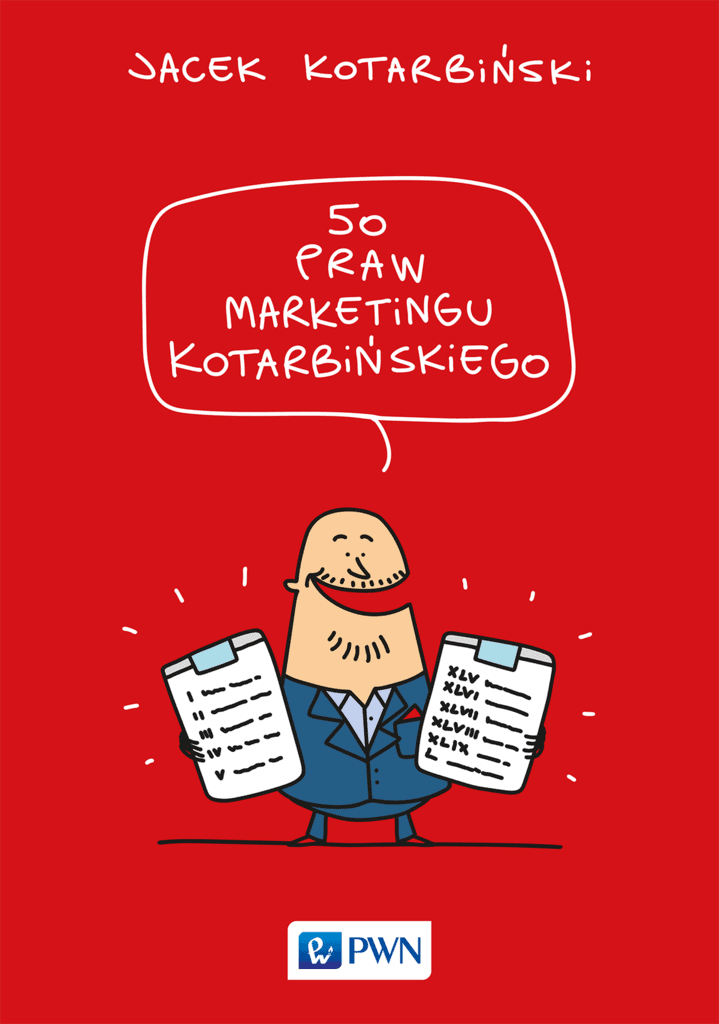 30 lat doświadczenia w marketingu, zebrałem w jednej książce. „50 Praw Marketingu Kotarbińskiego” to publikacja dla przedsiębiorców, marketerów i absolutnie każdego, kto uważa, że marketing jest ważny w jego pracy. Znajdziesz wewnątrz mnóstwo wskazówek, anegdot czy historii z mojego życia zawodowego. Mam nadzieję dostarczyć Ci wielu inspiracji. Wydawcą książki jest PWN, a autorem okładki i ilustracji Marcin Skoczek skoq.pl